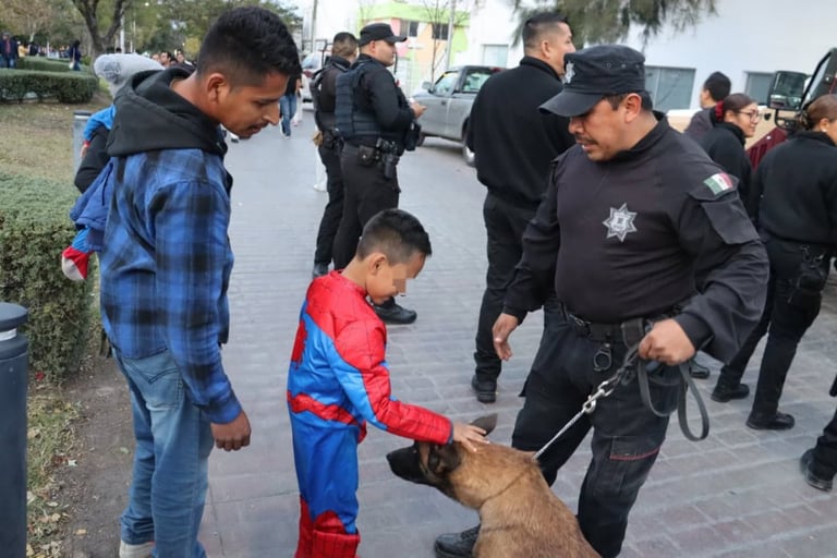 Durante la jornada, personal del Agrupamiento Canino, Guardia Estatal de Género, Guardia Estatal Cibernética, el área de Reclutamiento y Proximidad de la Delegación Victoria compartió con la población información sobre las funciones que desempeñan dentro de la corporación, así como las acciones que realizan para fortalecer la seguridad y brindar atención a la ciudadanía.